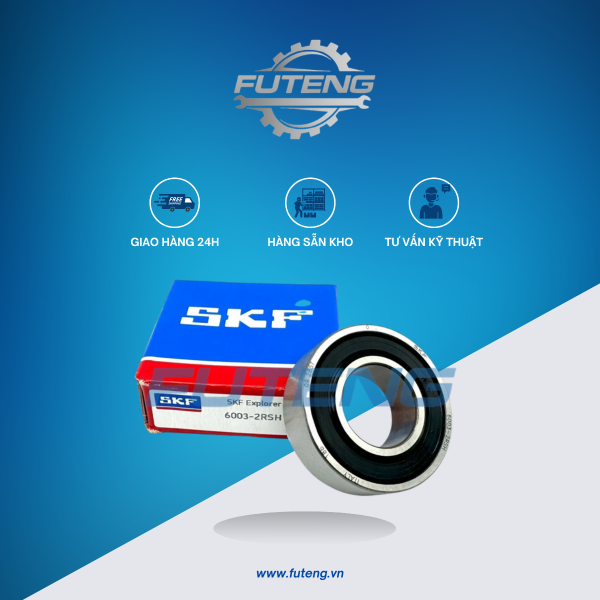 Bạc đạn 6003 2RS – chống bụi, giữ mỡ tốt, dùng cho thiết bị công nghiệp.