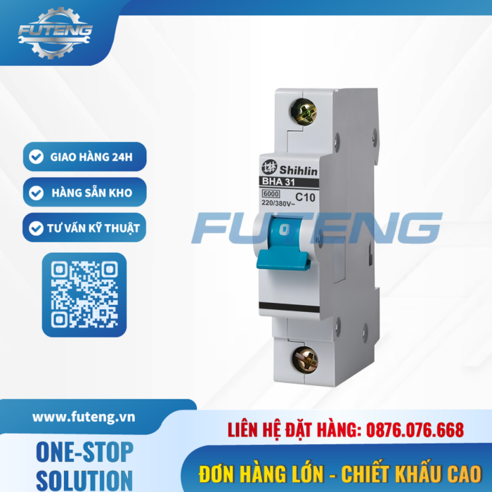 CB tép 1P 10A Shihlin chính hãng, đảm bảo an toàn điện, chống quá tải, ngắn mạch, rò điện. Phù hợp nhà xưởng, công trình, hệ thống điện công nghiệp. Futeng cung cấp đa dạng thương hiệu, giá cạnh tranh, giao nhanh 24–48h. Liên hệ hotline 0876.076.668 để được báo giá.