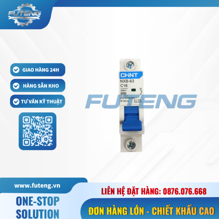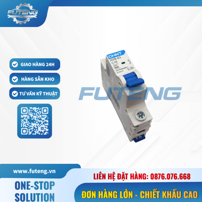 CB tép 1P 16A CHINT chính hãng, đảm bảo an toàn điện, chống quá tải, ngắn mạch, rò điện. Phù hợp nhà xưởng, công trình, hệ thống điện công nghiệp. Futeng cung cấp đa dạng thương hiệu, giá cạnh tranh, giao nhanh 24–48h. Liên hệ hotline 0876.076.668 để được báo giá.