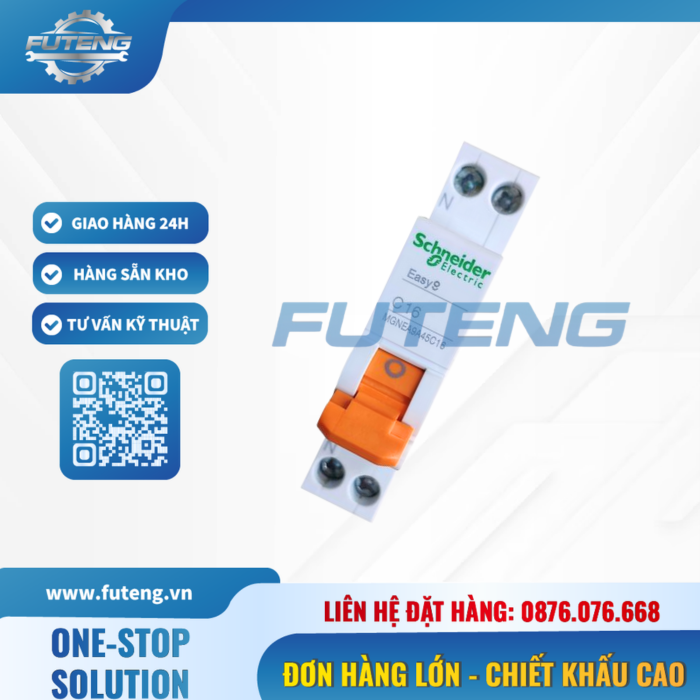 CB tép 1P 16A Schneider chính hãng, đảm bảo an toàn điện, chống quá tải, ngắn mạch, rò điện. Phù hợp nhà xưởng, công trình, hệ thống điện công nghiệp. Futeng cung cấp đa dạng thương hiệu, giá cạnh tranh, giao nhanh 24–48h. Liên hệ hotline 0876.076.668 để được báo giá.