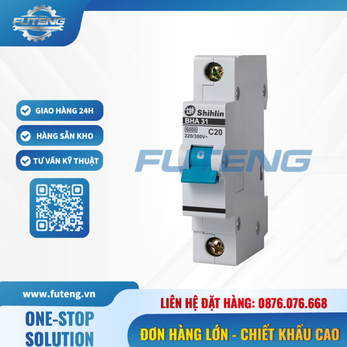CB tép 1P 20A Shihlin chính hãng, đảm bảo an toàn điện, chống quá tải, ngắn mạch, rò điện. Phù hợp nhà xưởng, công trình, hệ thống điện công nghiệp. Futeng cung cấp đa dạng thương hiệu, giá cạnh tranh, giao nhanh 24–48h. Liên hệ hotline 0876.076.668 để được báo giá.