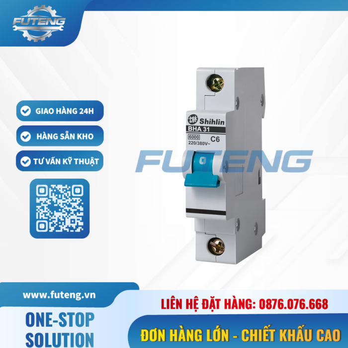 CB tép 1P 6A Shihlin chính hãng, đảm bảo an toàn điện, chống quá tải, ngắn mạch, rò điện. Phù hợp nhà xưởng, công trình, hệ thống điện công nghiệp. Futeng cung cấp đa dạng thương hiệu, giá cạnh tranh, giao nhanh 24–48h. Liên hệ hotline 0876.076.668 để được báo giá.