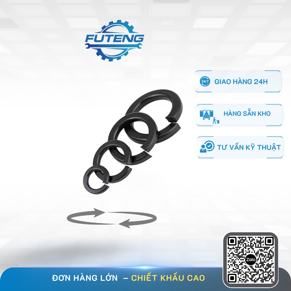 FUTENG phân phối long đen vênh thép (spring washer) size M3–M36, tiêu chuẩn DIN 127. Chống tuột, chống rung, chịu lực tốt. Hàng sẵn kho, giá tận xưởng, giao toàn quốc.