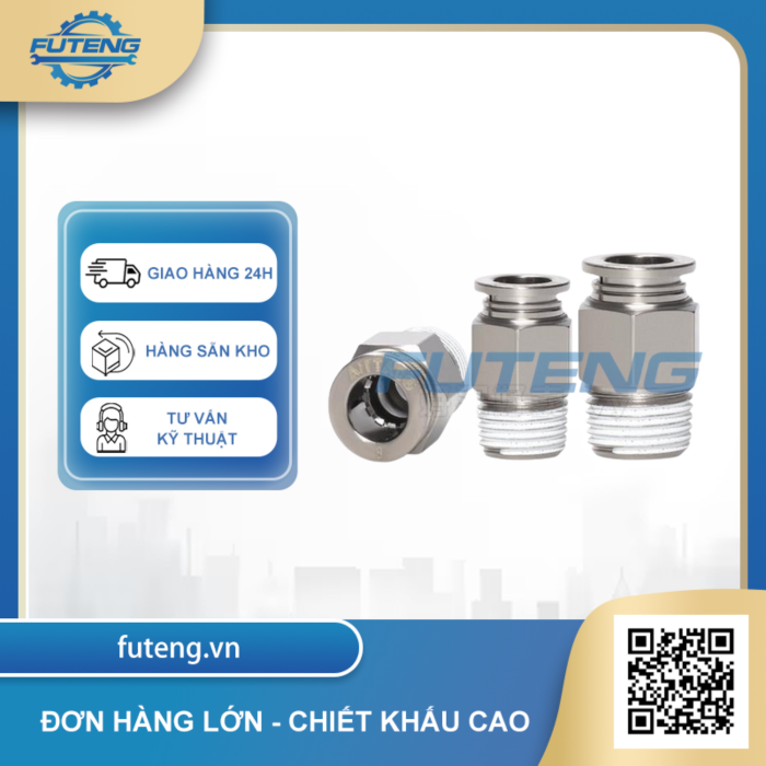 Nối khí nén ren ngoài inox AIRTAC BPC | Futeng – Giao hàng 24–48h, giá tận xưởng, hỗ trợ VAT/COCQ. Hotline: 0876.076.668.