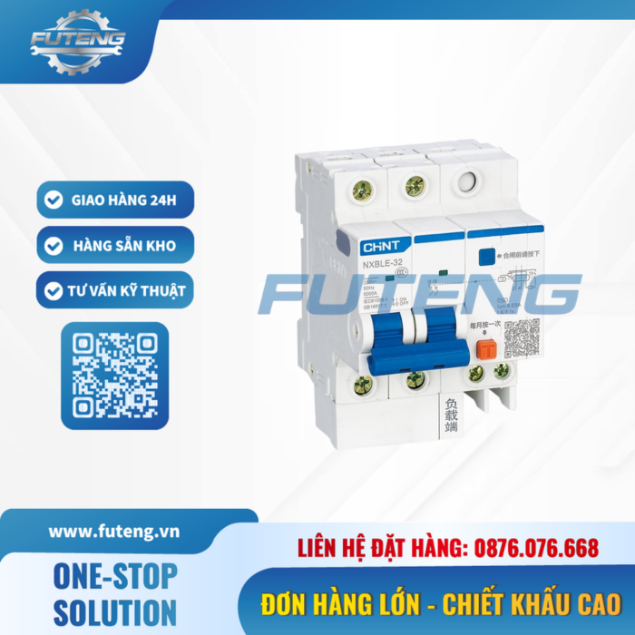 RCBO 1P+N 30mA 32A CHINT chính hãng, đảm bảo an toàn điện, chống quá tải, ngắn mạch, rò điện. Phù hợp nhà xưởng, công trình, hệ thống điện công nghiệp. Futeng cung cấp đa dạng thương hiệu, giá cạnh tranh, giao nhanh 24–48h. Liên hệ hotline 0876.076.668 để được báo giá.
