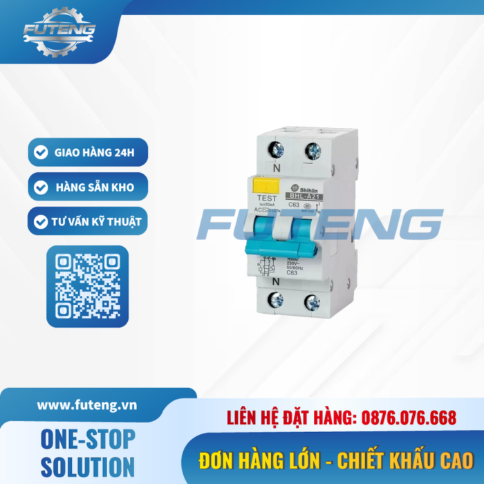 RCBO 1P+N 30mA 63A Shihlin chính hãng, đảm bảo an toàn điện, chống quá tải, ngắn mạch, rò điện. Phù hợp nhà xưởng, công trình, hệ thống điện công nghiệp. Futeng cung cấp đa dạng thương hiệu, giá cạnh tranh, giao nhanh 24–48h. Liên hệ hotline 0876.076.668 để được báo giá.