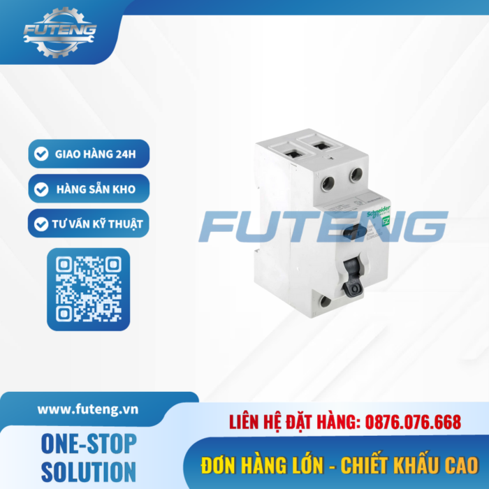 RCCB 2P 30mA 25A Schneider chính hãng, đảm bảo an toàn điện, chống quá tải, ngắn mạch, rò điện. Phù hợp nhà xưởng, công trình, hệ thống điện công nghiệp. Futeng cung cấp đa dạng thương hiệu, giá cạnh tranh, giao nhanh 24–48h. Liên hệ hotline 0876.076.668 để được báo giá.