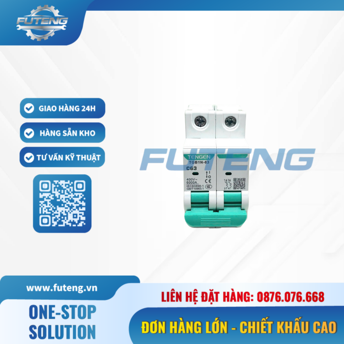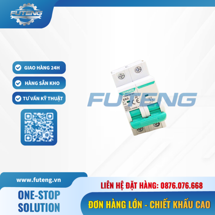 RCCB 2P 30mA 63A Tengen chính hãng, đảm bảo an toàn điện, chống quá tải, ngắn mạch, rò điện. Phù hợp nhà xưởng, công trình, hệ thống điện công nghiệp. Futeng cung cấp đa dạng thương hiệu, giá cạnh tranh, giao nhanh 24–48h. Liên hệ hotline 0876.076.668 để được báo giá.