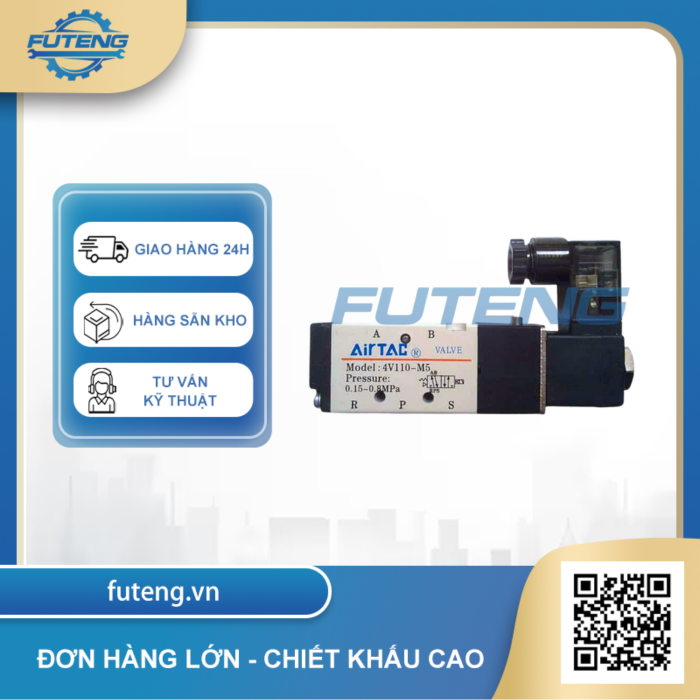 Van điện từ khí nén AIRTAC 4V110 | Futeng – Giao hàng 24–48h, giá tận xưởng, hỗ trợ VAT/COCQ. Hotline: 0876.076.668.